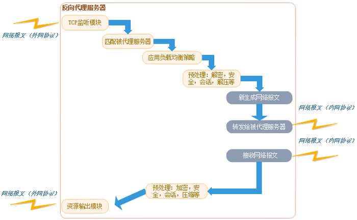此处主要做三件事:1. 从TCP报文中获取HTTP请求报文。 2. 根据和用户代理的协商进行解密,解压,安全处理等等。3. 根据服务器自身的配置进行安全处理,建立会话状态等等。