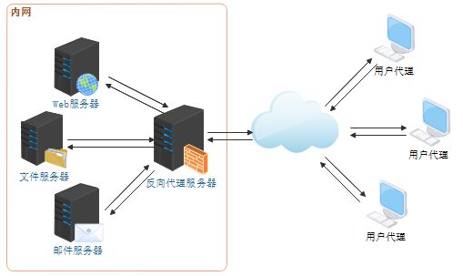 互联网中的请求发送给反向代理,反向代理把请求转发到内网中的服务器。