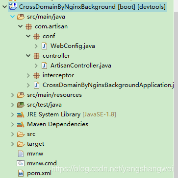 为了简单,我们使用Spring Boot 快速搭建个后台服务,提供restful接口。 我这里加上了interceptor,其实验证这个问题,没必要加。 加上一方面是熟悉下拦截器的使用,二来也可以看下request中请求的URI