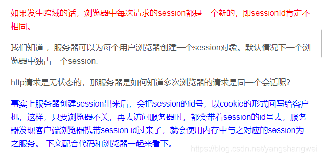 如果发生跨域的话,浏览器中每次请求的session都是一个新的,即sessionId肯定不相同。