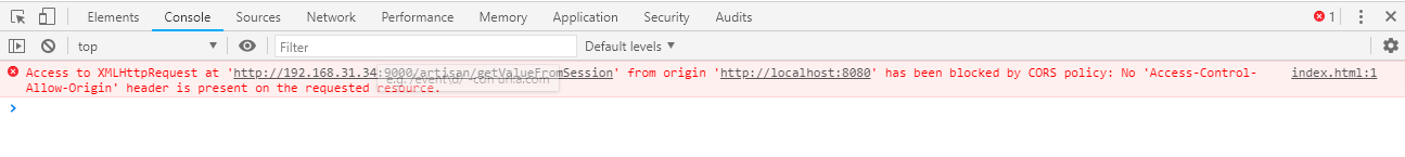 Access to XMLHttpRequest at ‘http://192.168.31.34:9000/artisan/getValueFromSession’ from origin ‘http://localhost:8080’ has been blocked by CORS policy: No ‘Access-Control-Allow-Origin’ header is present on the requested resource.