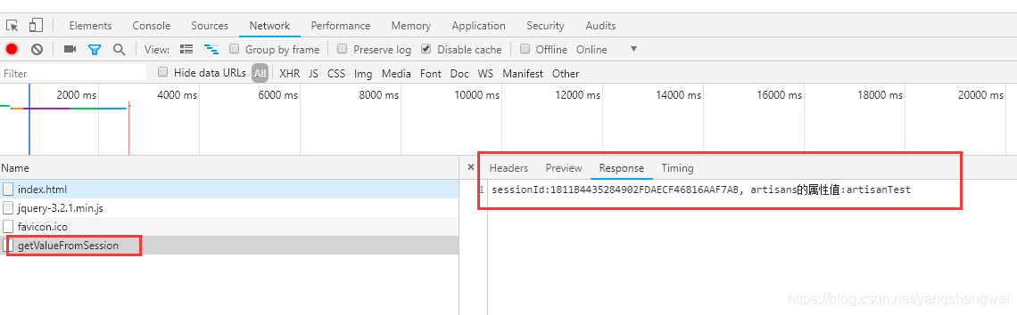 return "sessionId:" + request.getSession().getId() + ", artisans的属性值:" + request.getSession().getAttribute("artisan");