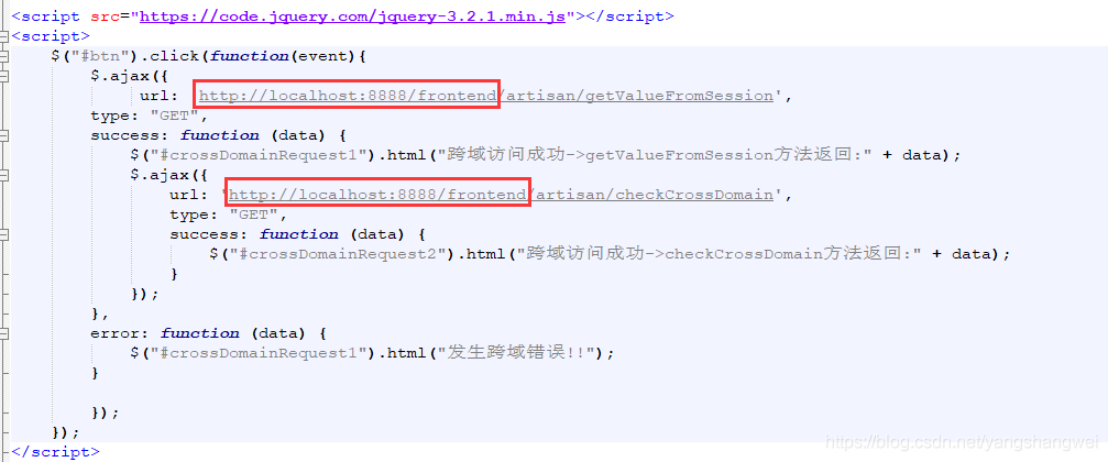url: 'http://localhost:8888/frontend/artisan/checkCrossDomain',