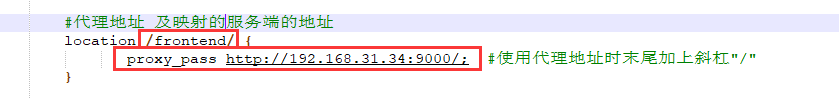 proxy_pass http://192.168.31.34:9000/; #使用代理地址时末尾加上斜杠"/"