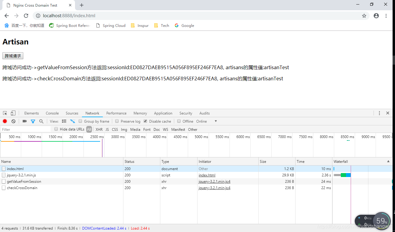 访问正常,且是通过一个session , 跨域问题使用Nginx得到解决。