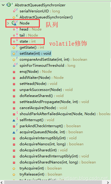 如上图,AbstractQueuedSynchronizer底层数据结构是一个双向链表,是队列的一种实现