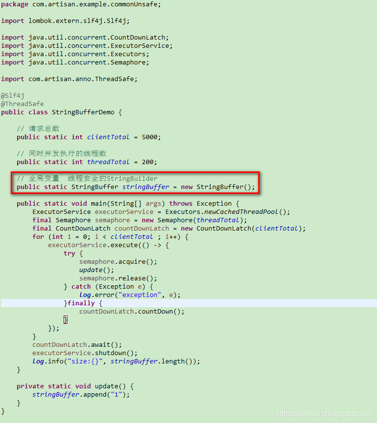 结果等于5000,在多线程情况下,StringBuffer是线程安全的.