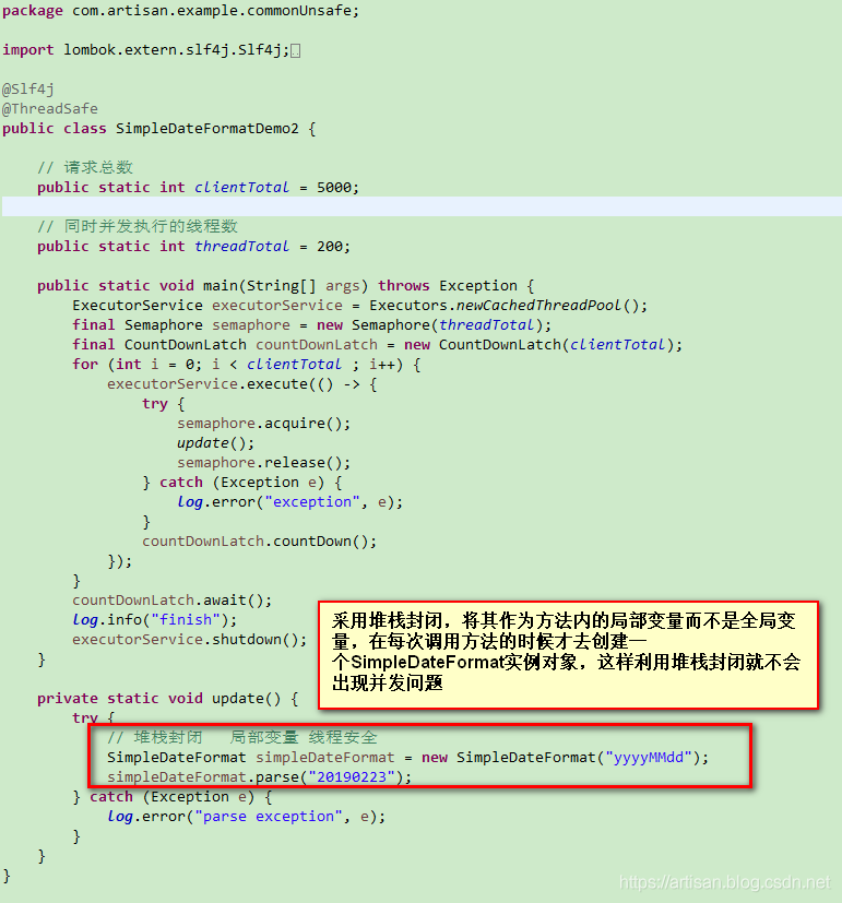 SimpleDateFormat (线程安全的写法-堆栈封闭)