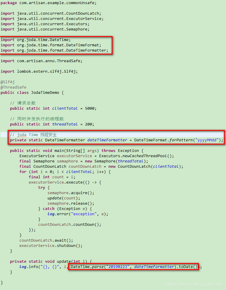 另一种方式是使用第三方库joda-time的DateTimeFormatter类 或者JDK8新提供的类 : 不可变类且线程安全 LocalDate 、java.time.LocalTime 和LocaldateTime 新的Date和Time类DateTimeFormatter