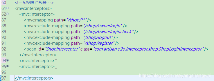 基于Spring MVC的项目 ,我们之前的案例配置拦截器的方式如下: