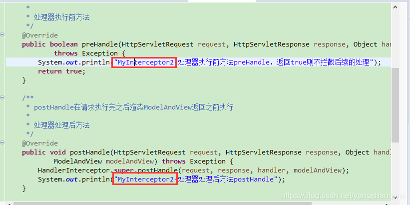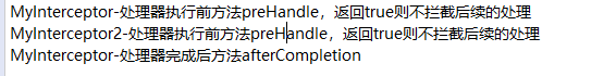 System.out.println("MyInterceptor-处理器执行前方法preHandle,返回true则不拦截后续的处理");