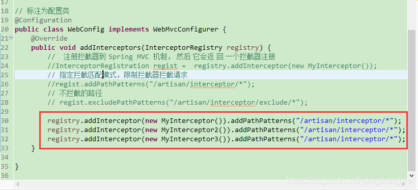 regist.addPathPatterns("/artisan/interceptor/*");