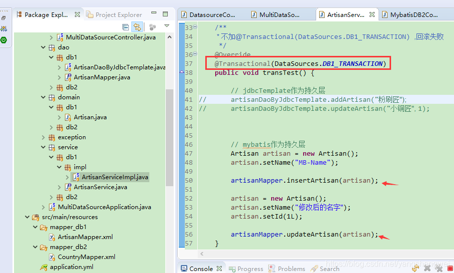 Step2 如何使用呢? @Transactional(DataSources.DB1_TRANSACTION)