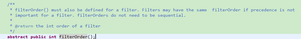 - filterOrder:过滤器的执行顺序,不同的过滤器可以返回相同的数字
