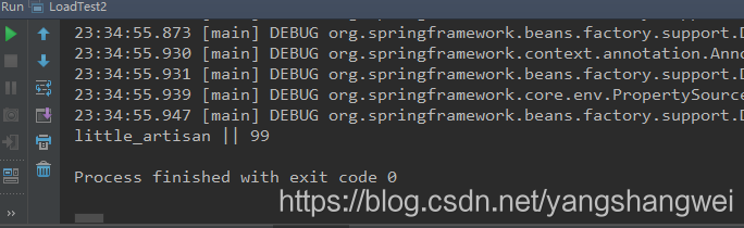 关键日志:Returning cached instance of singleton bean 'artisan' ,可以知道配置在配置文件中 的名称为 artisan的 Bean 已经被装配到 IoC 容器中 ,并且可以通过 getBean方法获取对应的 Bean.