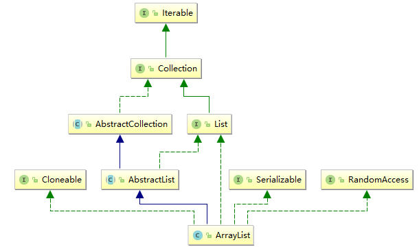 类图:我们阅读源码的时候,想知道各个类之间的关系怎么办,Ctrl+shift+Alt+U,所有依赖都以拓扑图的方式展现出来,所有的关系和位置都能找到,以ArrayList为例: