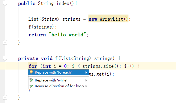 写完一个list用for遍历;Alt+Enter一下,他就告诉你还有更好的重构方法: