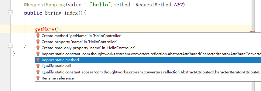 代码报错只要alt+Enter一下,他就为我们提供了好了解决方案;