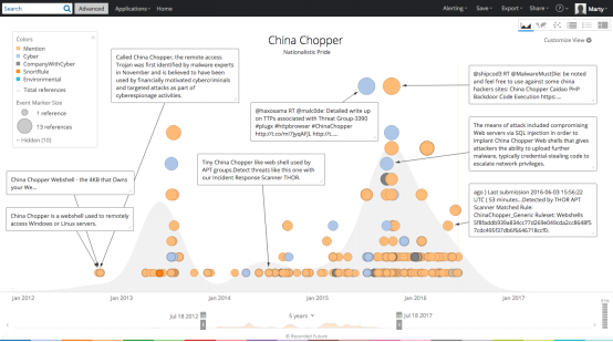 下面这个由ReversingLabs处理的China Chopper图表描绘了2016年3月Cknife开源版本公布之后中文论坛上对其引用的激增。