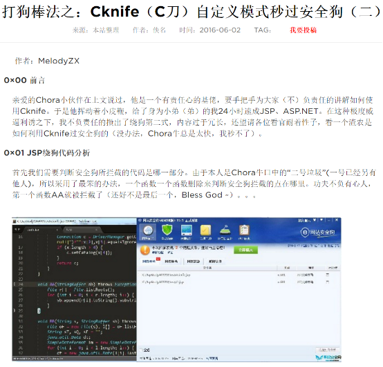 大量中文论坛公布了一份受其启发编写的webshell代码,向 China Chopper表示敬意。