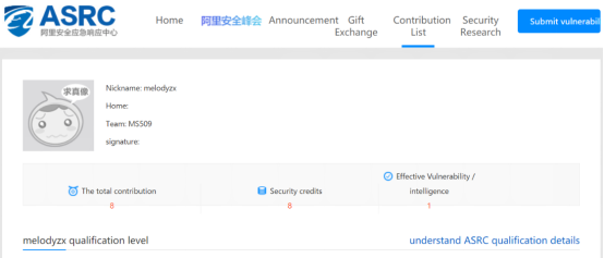此外,MelodyZX还是阿里巴巴漏洞披露名单的前50名之一。