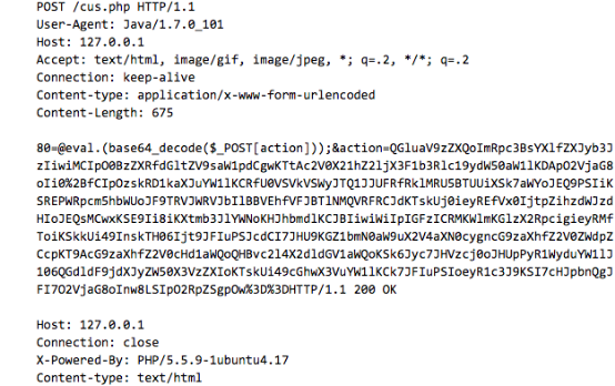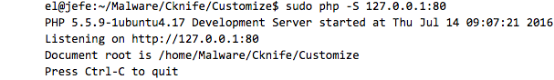 了解Cknife 客户端和 Ubuntu 14.04 webshell之间基本联系的快速办法就是使用和cus.php web shell文件有着相同本地目录的PHP服务器。