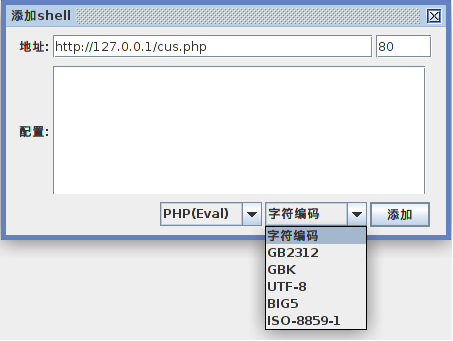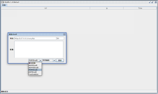 接下来使用 Cknife 客户端连接到本地 cus.php webshell中。
