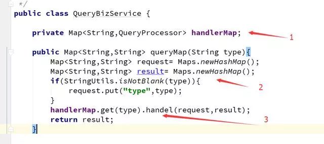 这是Map策略模式的应用,前面1、2步骤都一样,第3步就不是循环调用了,是单个调用。