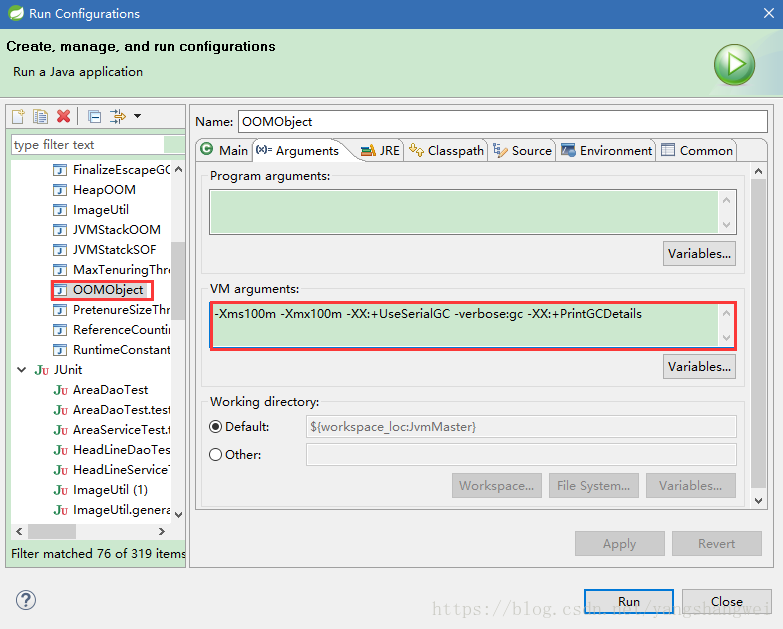 -Xms100m -Xmx100m -XX:+UseSerialGC -verbose:gc -XX:+PrintGCDetails