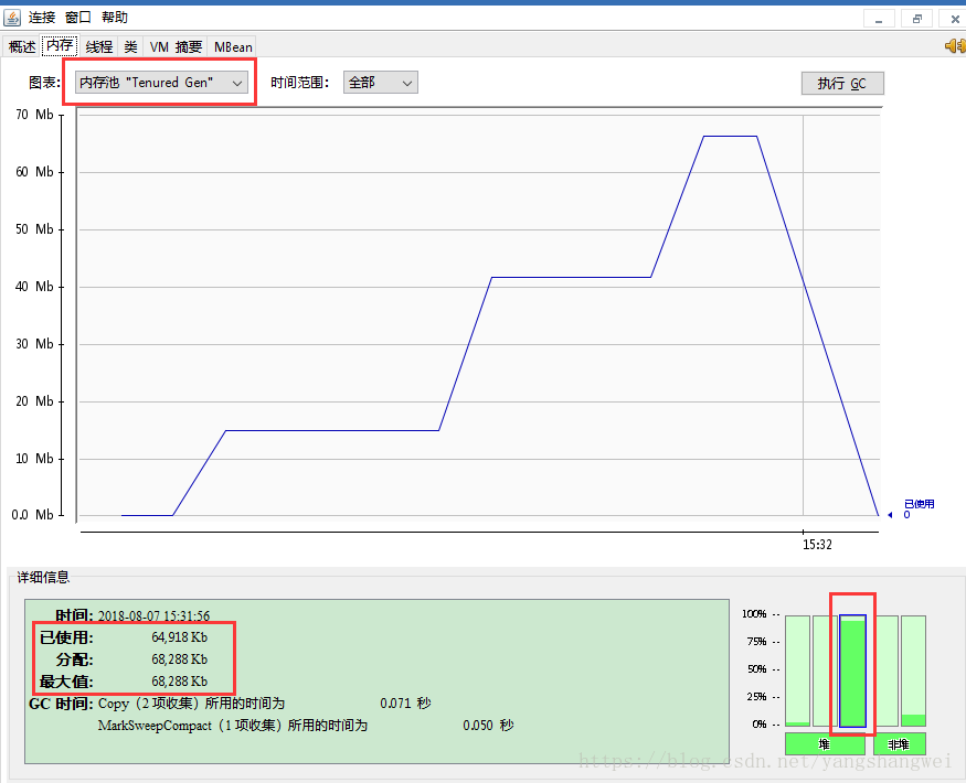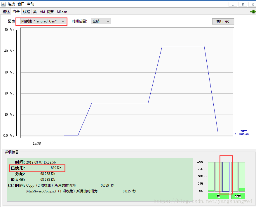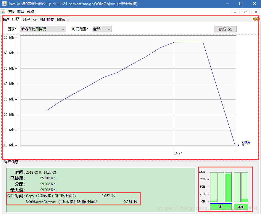 为何老年代的柱状图信息仍显示峰值状态,如何调整代码回收该区域
