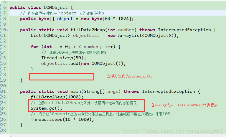只要在该方法外执行GC就可以将老年代的内存回收。 我们来实践下