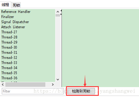 点击“检测到死锁”按钮,如果 有死锁将会出现一个新的“死锁”页签。
