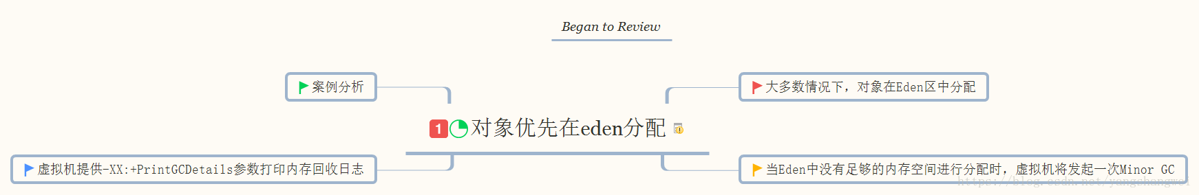 大多数情况下,对象在新生代的eden区中分配,当eden区没有足够的空间进行分配时,虚拟机将进行一次Minor GC。