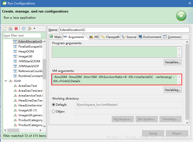 * -XX:+UseSerialGC -verbose:gc -XX:+PrintGCDetails