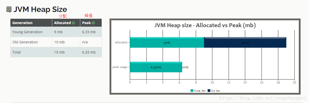 -Xms20M -Xmx20M:java堆内存初始化值和最大值均为20M,不可扩展。-Xmn10M :同时给新生代分配10M内存,可以推算出老年代也是20-10=10M