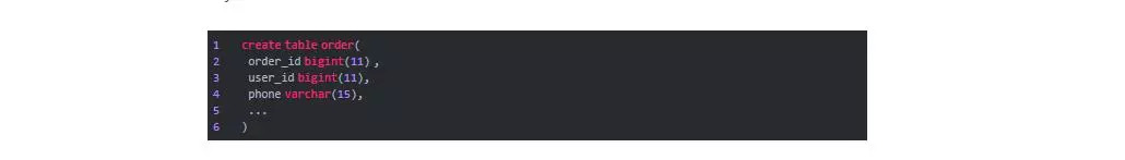 1create table order(2 order_id bigint(11) ,3