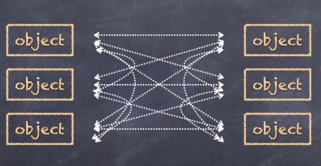 从People类中我们可以看到,沟通只只能在两人之间进行,而且各自都持有对方对象的引用,以便把消息传递给对方的监听方法。这种模式虽然简单,但耦合性太强,你中有我,我中有你,谁也离不开谁。试想如果再有多个人加入交谈,那每个人都要持有其他所有人的引用了,这时会陷入一种多对多的关联陷阱,对象关系变得复杂不堪,如蛛网般难以维护。