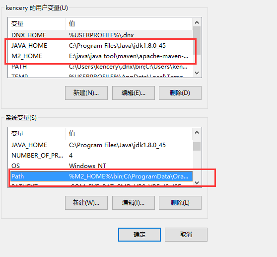 备注:必须要有JAVA_HOME的M2_HOME环境变量,不然Maven会提示错误。配置环境变量如图所示: