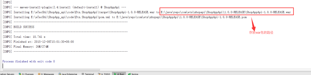 g.选择install右键选择Run运行即可,运行完成之后则会提示你打包的war包在哪里,如图所示