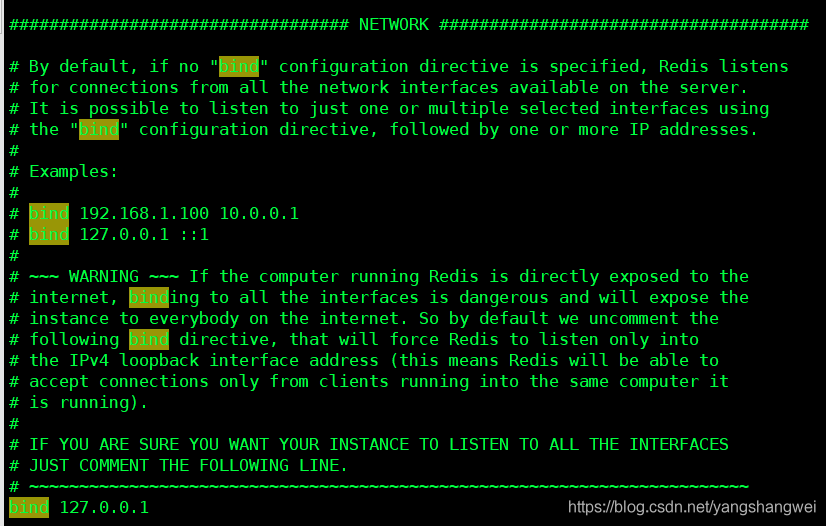 bind 配置的是 redis server 网卡的地址 ,配置哪个网卡地址,你就可以通过哪个网卡地址访问redis ,而不是外部访问redis的ip 列表。