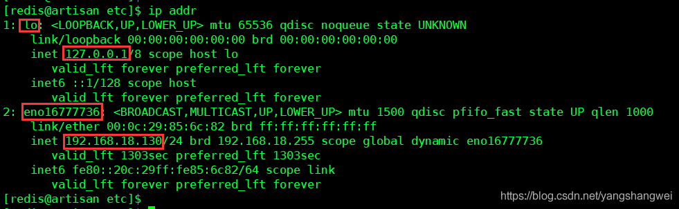可以看到,我这个主机上有两个网卡,1个是回环地址 127.0.0.1 ,另外一个是 eno16777736对应的192.168.18.130 。