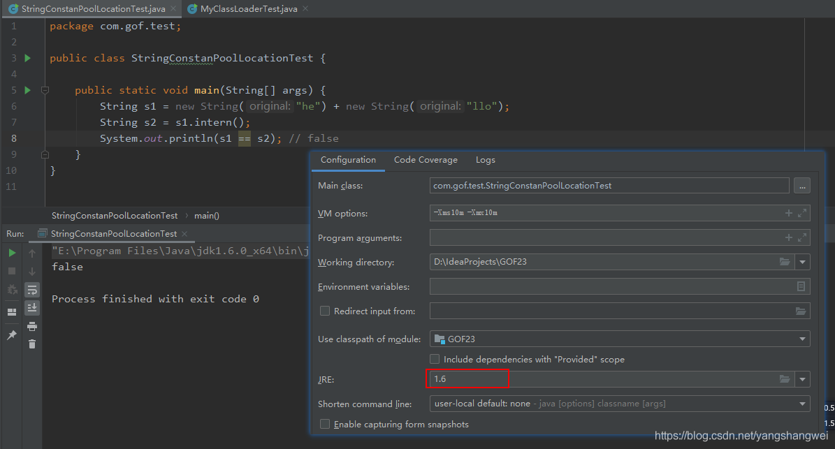 对于JDK1.6 , 字符串常量池位于永久代 。