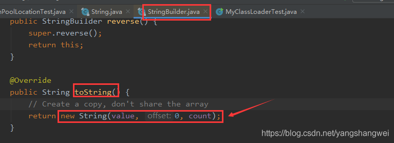 看看StringBuilder#toString ,其实就是new String , 堆中分配内存地址
