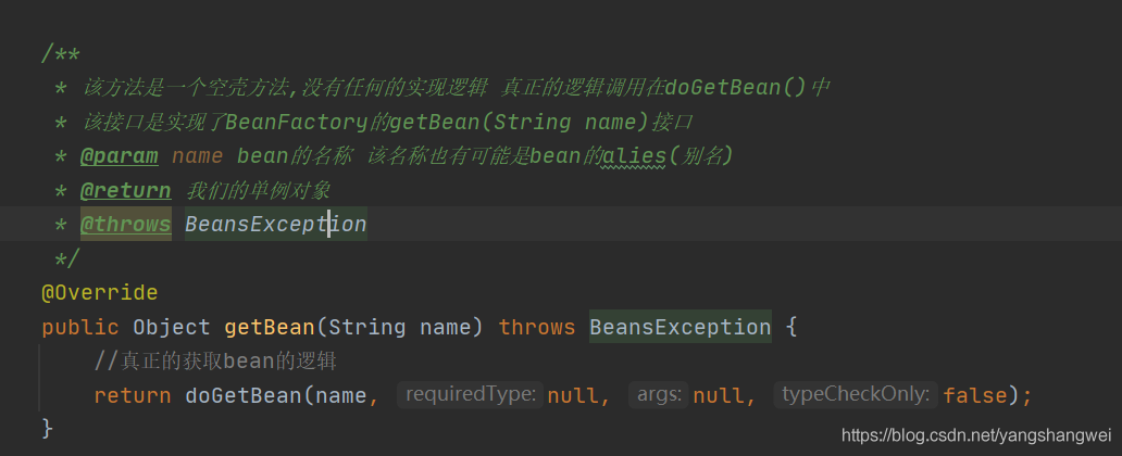 //或有的bean的名称 ...........到这里所有的单实例的bean已经记载到单实例bean到缓存中
