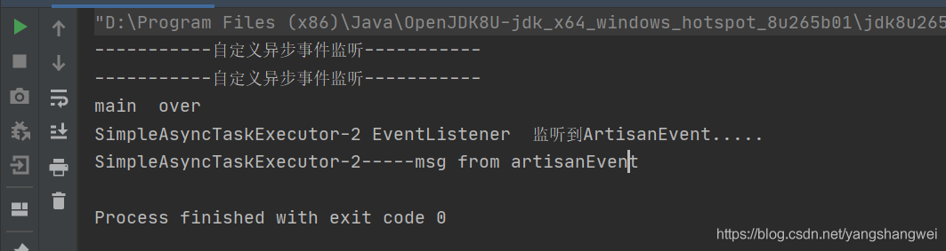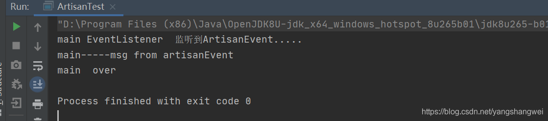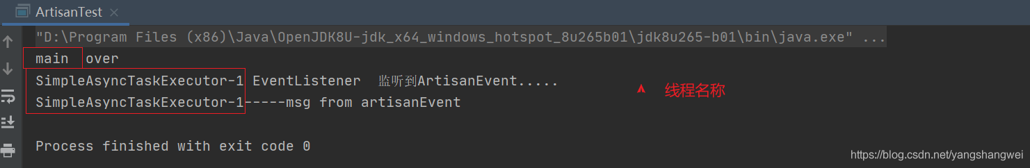 System.out.println(Thread.currentThread().getName() + " EventListener 监听到ArtisanEvent.....");