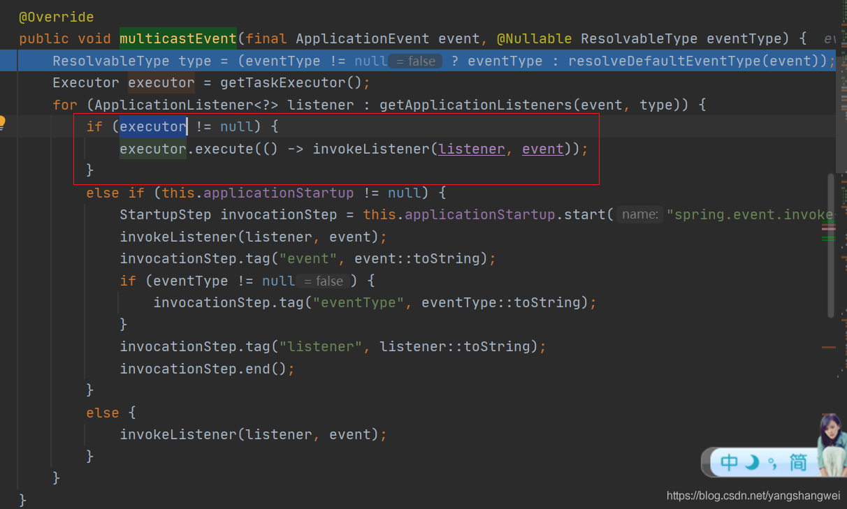 Spring会遍历所有的ApplicationListener, 如果 taskExecutor 不为空,这开启异步线程执行。
