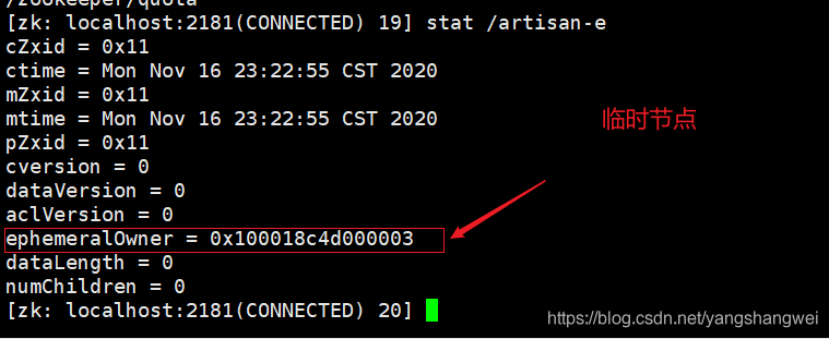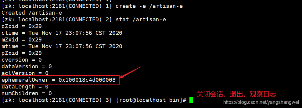 [zk: localhost:2181(CONNECTED) 17] create -e /artisan-e