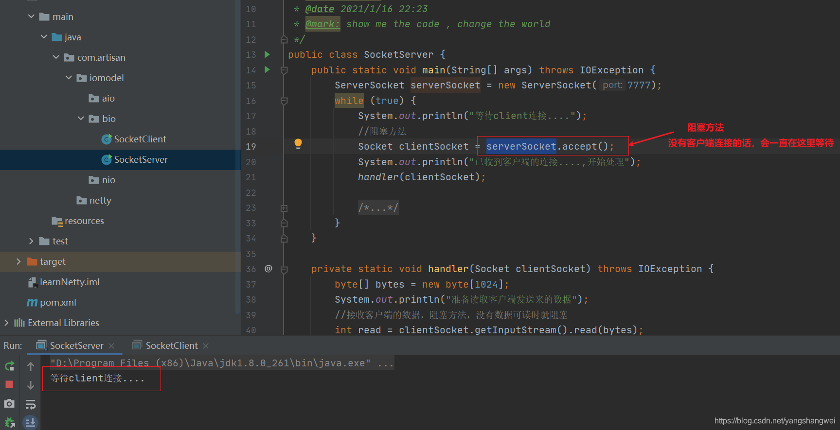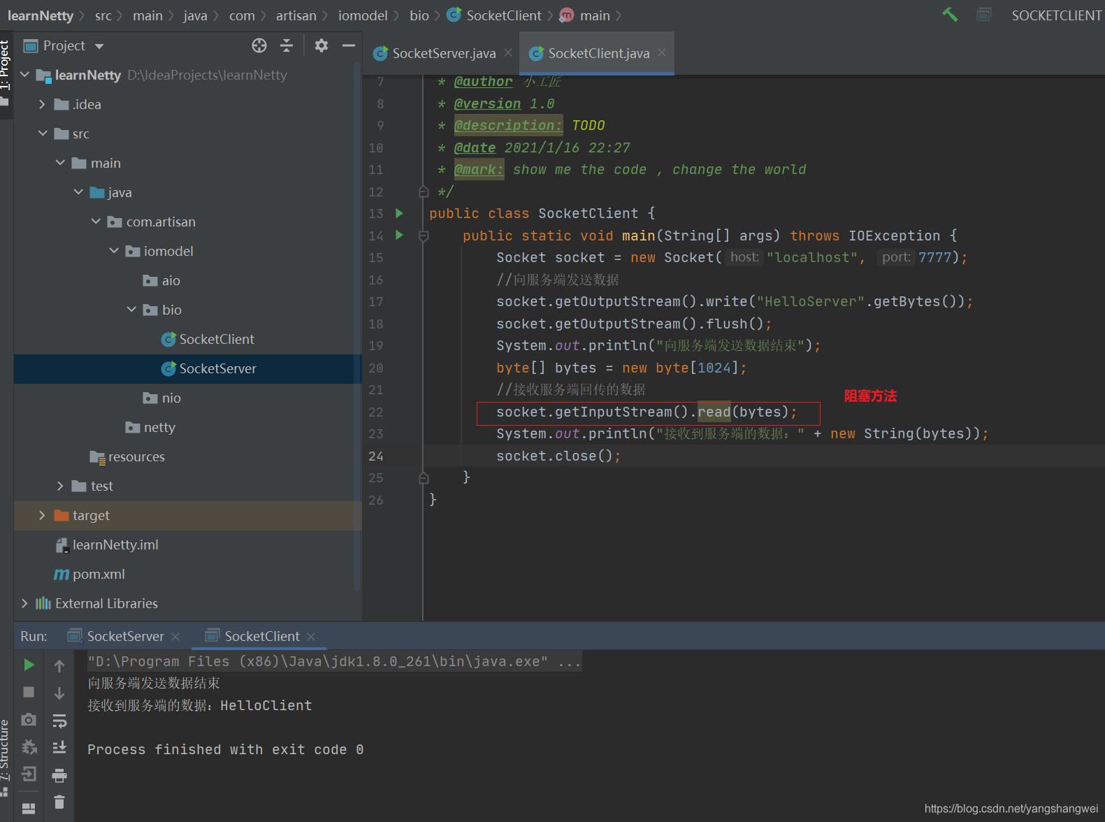 //接收客户端的数据,阻塞方法,没有数据可读时就阻塞