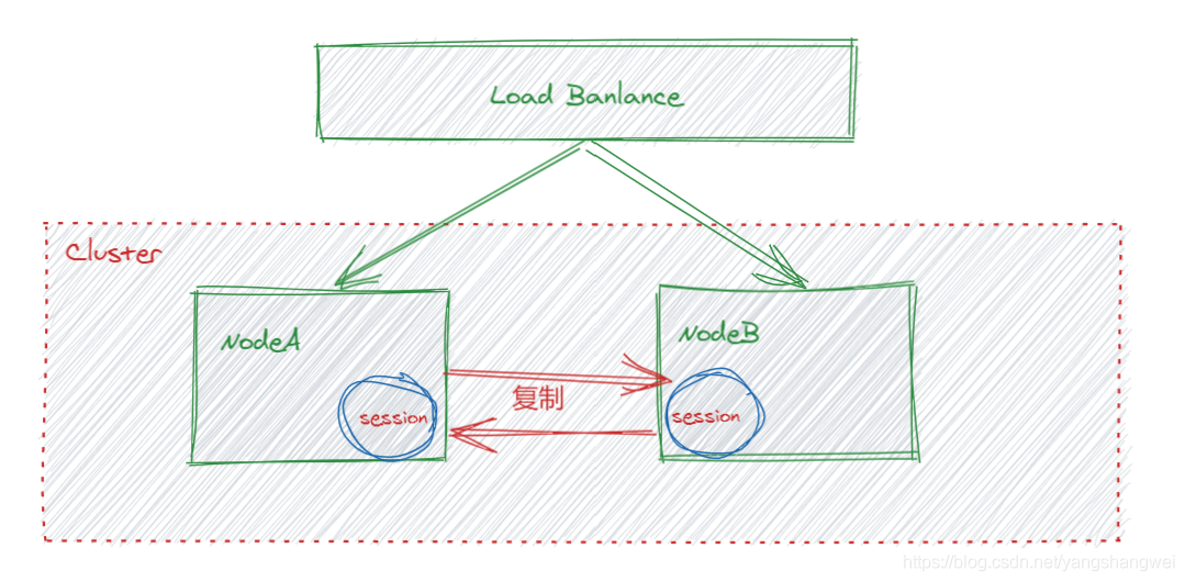 Web 服务器之间,进行 Session 复制同步。仅仅适用于实现 Session 复制的 Web 容器,例如 Tomcat