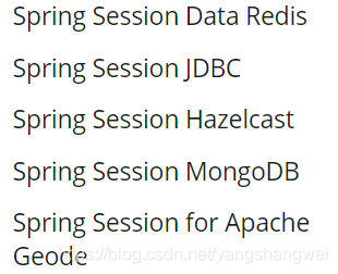 我们这里只讨论 Spring Session提供的解决方案 ,支持外部存储包括 Redis . 数据库、Hazelcast、MongoDB等